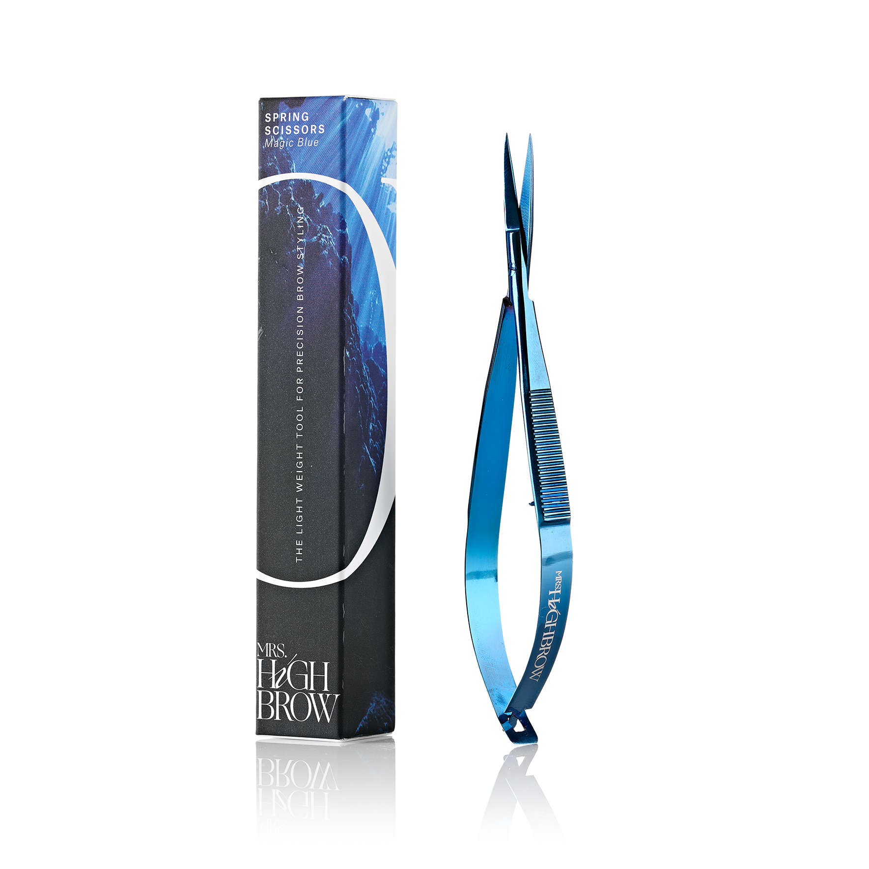 Obtenez des sourcils parfaitement soignés et définis avec les ciseaux à ressort Mrs.Highbrow—l'outil indispensable pour les stylistes professionnels des sourcils.