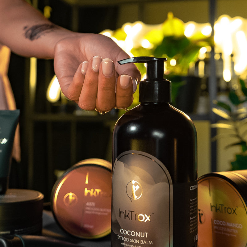 Contrairement aux baumes lourds, InkTrox Coconut offre une expérience sensorielle luxueuse avec le parfum de noix de coco fraîche, transformant le soin quotidien en un rituel apaisant. Il protège et nourrit tout en aidant à garder les tatouages vibrants et bien définis pendant des années.