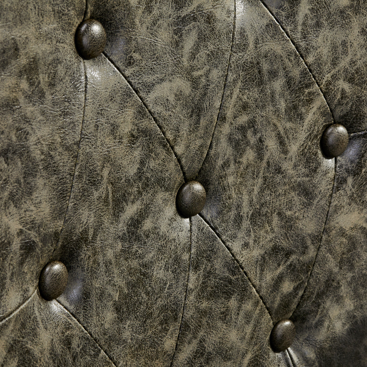La construction solide de la base assure stabilité et grand confort d'utilisation. Le rembourrage de l'assise est fait de mousse durable et résistante à la déformation et le revêtement est en cuir synthétique agréable au toucher avec une finition usée, partiellement mate avec un effet vieilli, garantissant la durabilité du mobilier et son confort d'utilisation sur le long terme. Ils rendent également l'équipement résistant à l'humidité, durable et facile à nettoyer. Le revêtement dans des tons verts avec matelassage et boutons décoratifs lui confère un caractère unique. Le fauteuil au design caractéristique, rappelant le style vintage, s'intègre parfaitement à l'atmosphère des barbiers, soulignant leur ambiance unique.