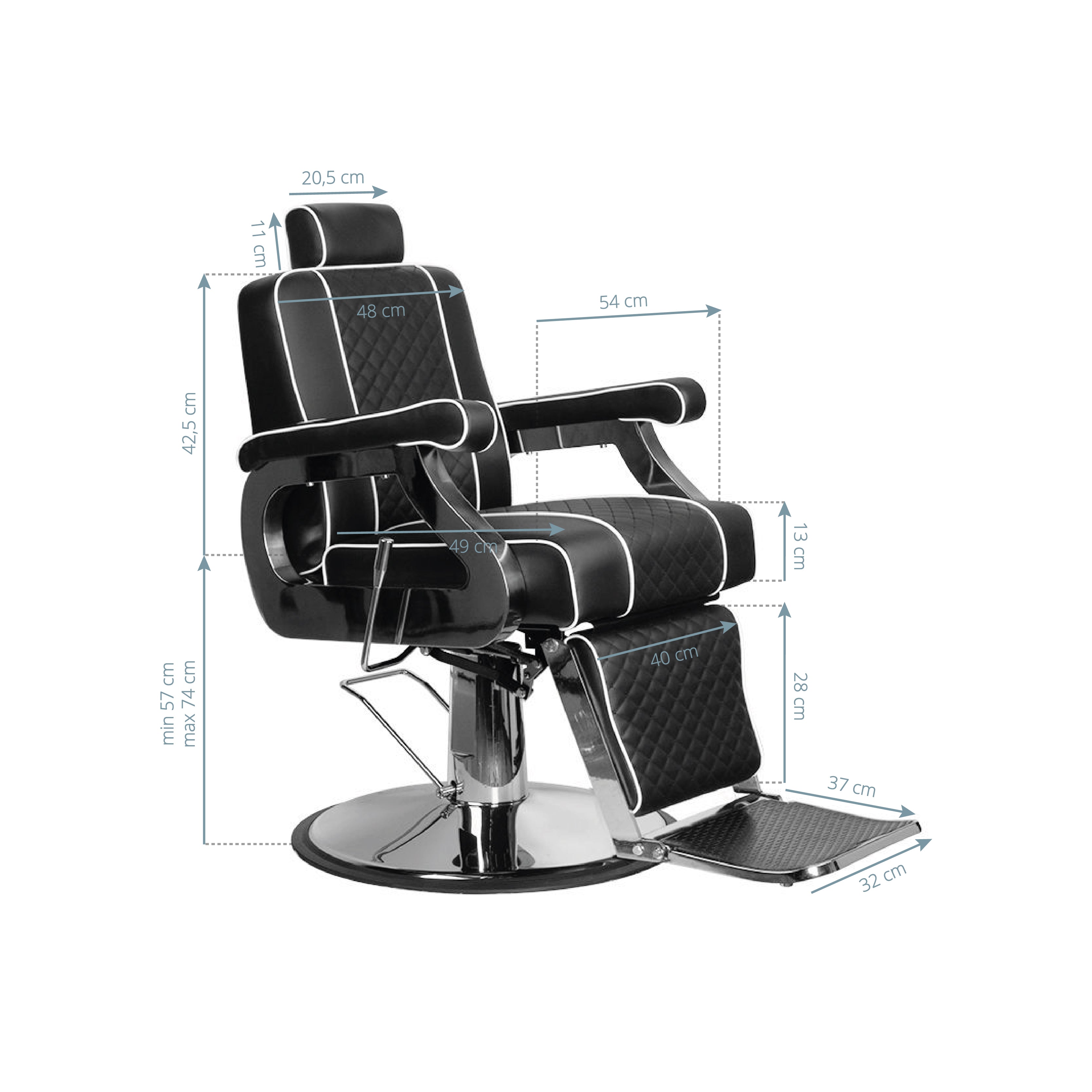 Présentation du fauteuil de barbier Paulo - un meuble moderne et parfaitement fini conçu pour offrir à vos clients du salon un confort optimal pendant les soins.