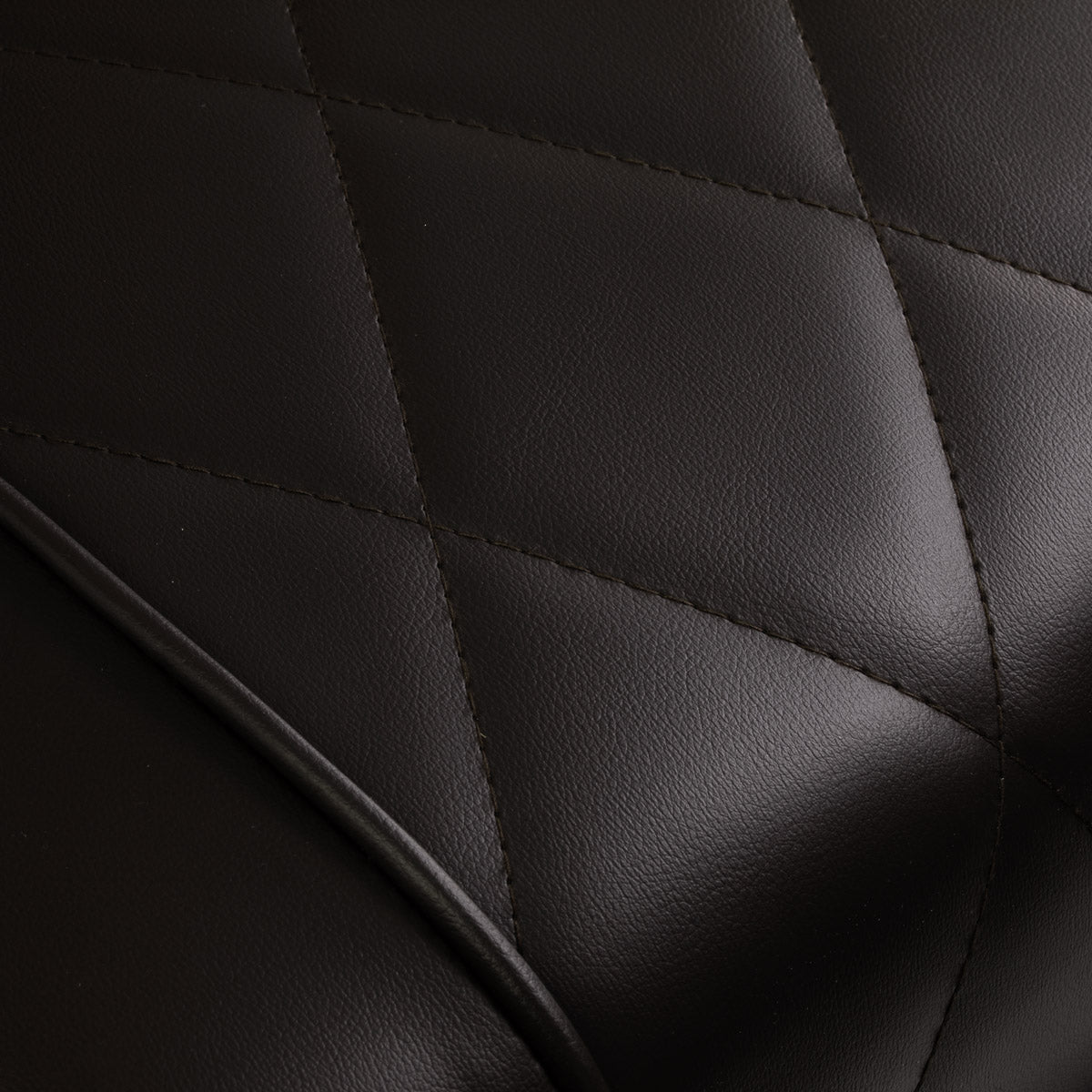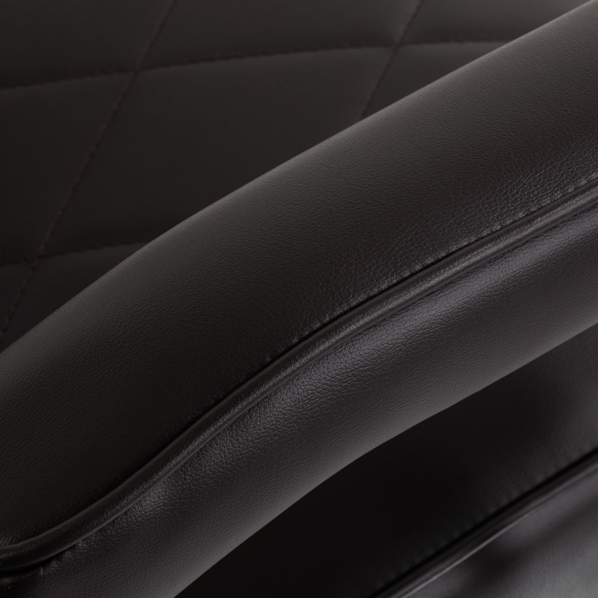 La construction solide à base ronde du fauteuil assure stabilité et excellent confort utilisateur. Le rembourrage de l'assise, fait de mousse résistante à la déformation, et la garniture en cuir synthétique doux au toucher avec une finition mate garantissent une durabilité longue durée et un confort lors d'une utilisation prolongée. La couture élégante sur la garniture ajoute du caractère, évoquant des inspirations de design automobile qui améliorent son apparence élégante. Cette caractéristique rend également le fauteuil résistant à l'humidité, durable et facile à nettoyer. La garniture dans des tons bruns donne au fauteuil un caractère unique, et son style minimaliste lui permet de s'intégrer parfaitement à la décoration de tout barbier.