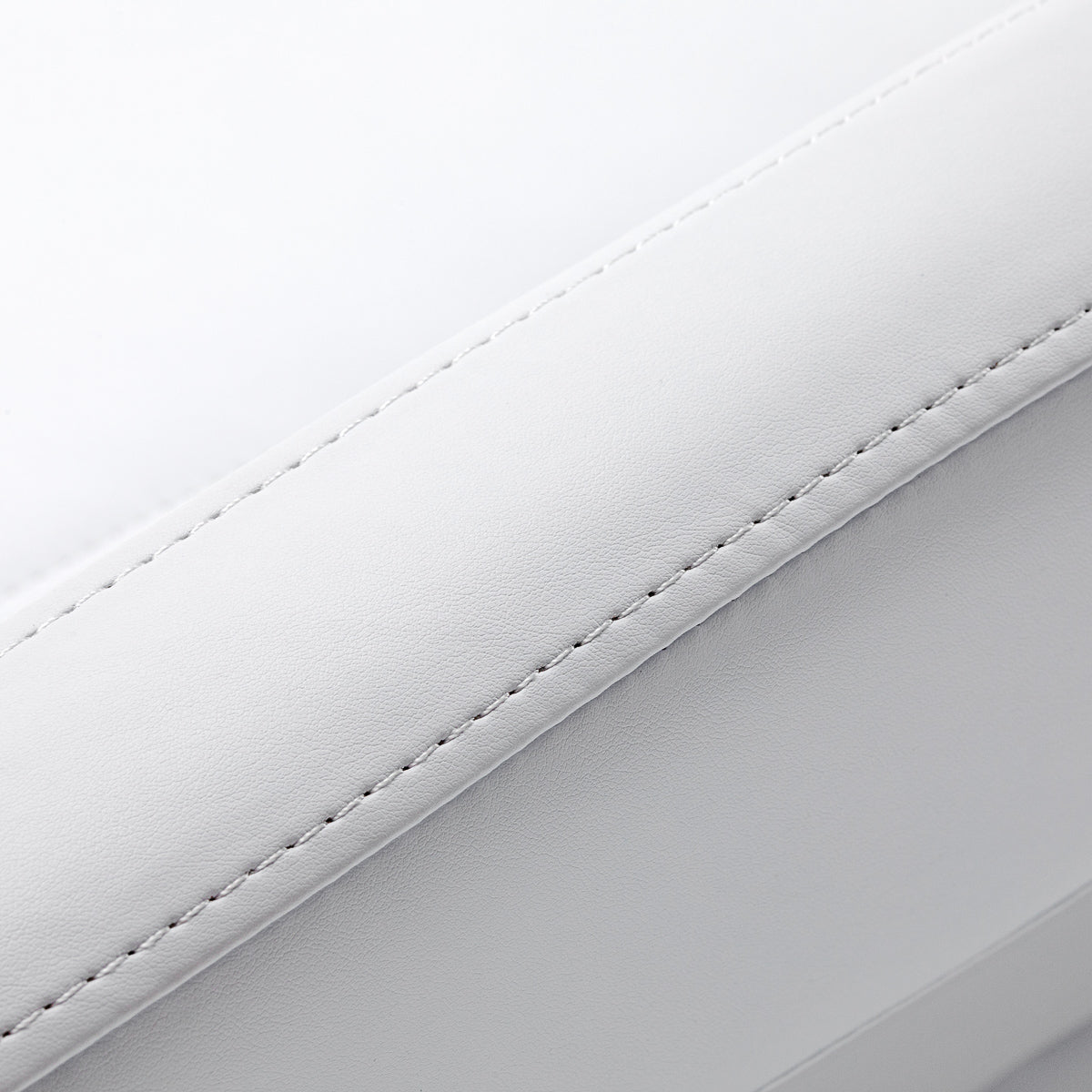 La construction solide de la chaise assure stabilité et durabilité lors de l'utilisation quotidienne. L'assise, remplie de mousse d'une dureté appropriée, garantit le confort même pendant les longues procédures. Le revêtement en cuir synthétique de haute qualité, agréable au toucher, dans des nuances de blanc, donne à la chaise un aspect professionnel, tout en étant résistant à l'humidité et facile à nettoyer. La base durable assure la stabilité, et les finitions précises soulignent le caractère moderne de la chaise et améliorent l'ergonomie de l'assise.