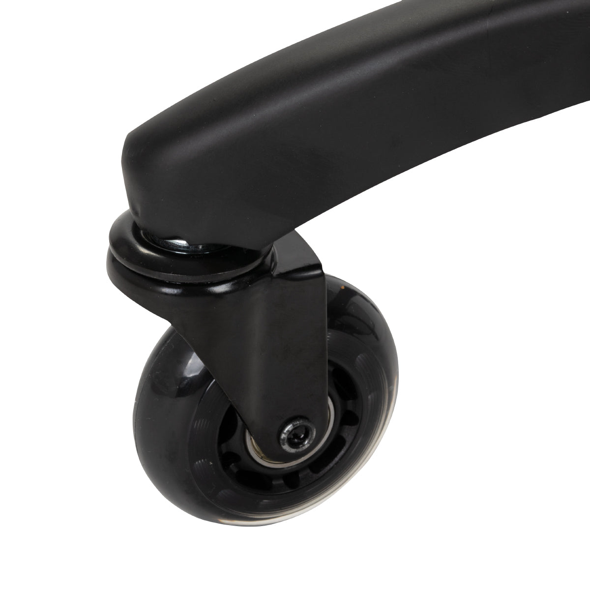 Le réglage de la hauteur de l'assise varie de 56 à 76 cm, permettant une position personnalisée selon les besoins individuels du professionnel lors de la prestation de services. Le dossier soutient la colonne vertébrale, assurant le confort même lors d'un travail prolongé. Le mécanisme de rotation complète augmente la liberté de mouvement, ce qui se traduit par un plus grand confort et une meilleure efficacité. La mobilité est assurée par des roulettes Roll Speed avec un noyau en fer et un revêtement en polyuréthane (PU), qui allient un mouvement fluide à une résistance exceptionnelle à l'usure. L'utilisation de roulements ABEC-7 facilite le déplacement du tabouret et simplifie considérablement les manœuvres.