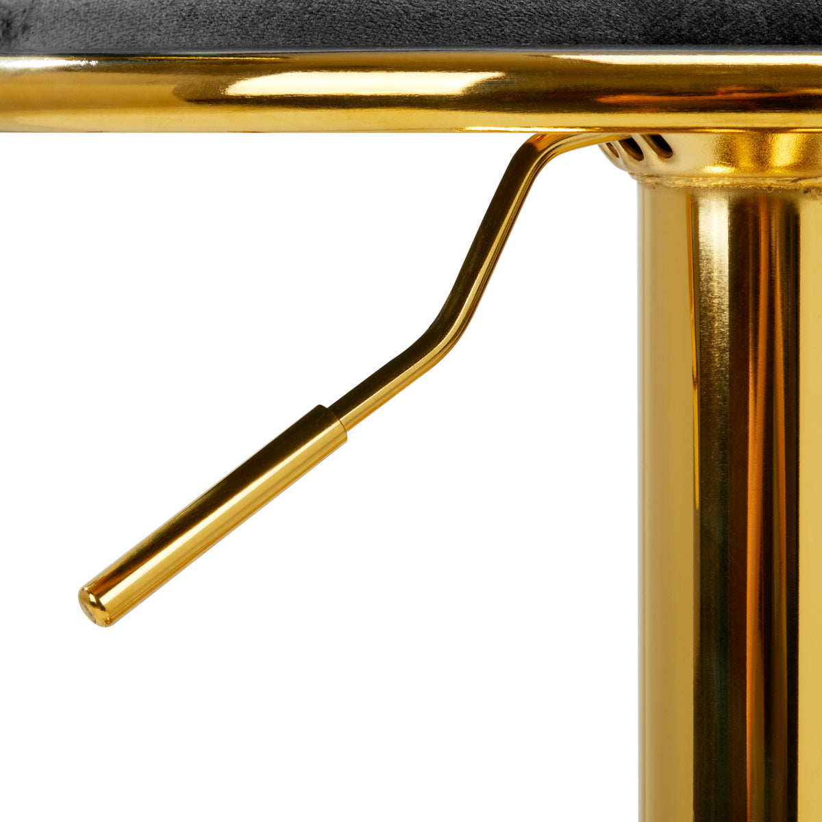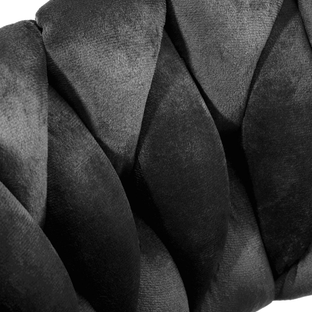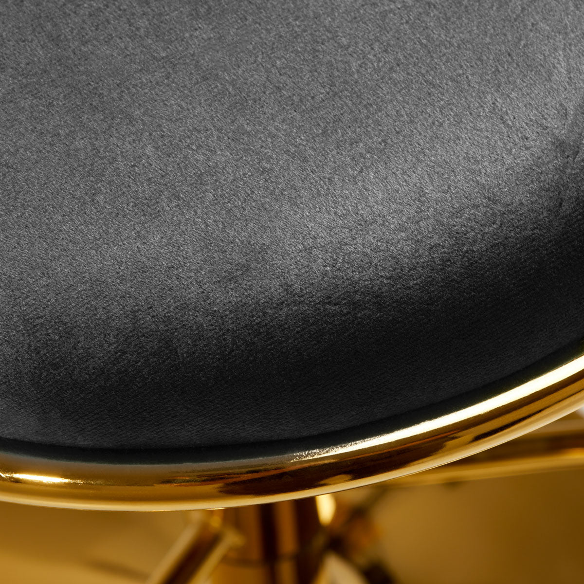 Un revêtement en velours agréable au toucher dans des nuances de gris donne au repose-pieds un caractère unique, et le tissu esthétiquement entrelacé sur le dossier souligne l'aspect unique du meuble. La finition attire le regard. Le cadre dans des tons dorés ajoute élégance et prestige, s'accordant parfaitement avec le velours.