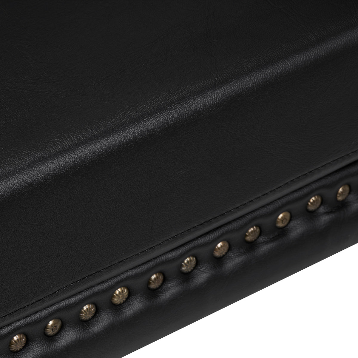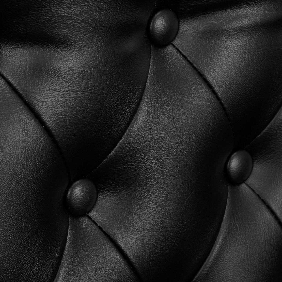 Le meuble fonctionnel est rempli de mousse durable et résistante à la déformation, et le revêtement est en cuir synthétique agréable au toucher dans des teintes noires. Les matériaux utilisés garantissent une utilisation confortable du mobilier sur le long terme et rendent l'équipement résistant à l'humidité, durable et facile à nettoyer. Le matelassage décoratif et les éléments dorés lui confèrent une élégance intemporelle. Le fauteuil de coiffure Gabbiano Berlin se distingue par un design exclusif, qui lui donne un caractère unique et fait que le fauteuil s'intègre parfaitement dans de nombreux salons de coiffure.