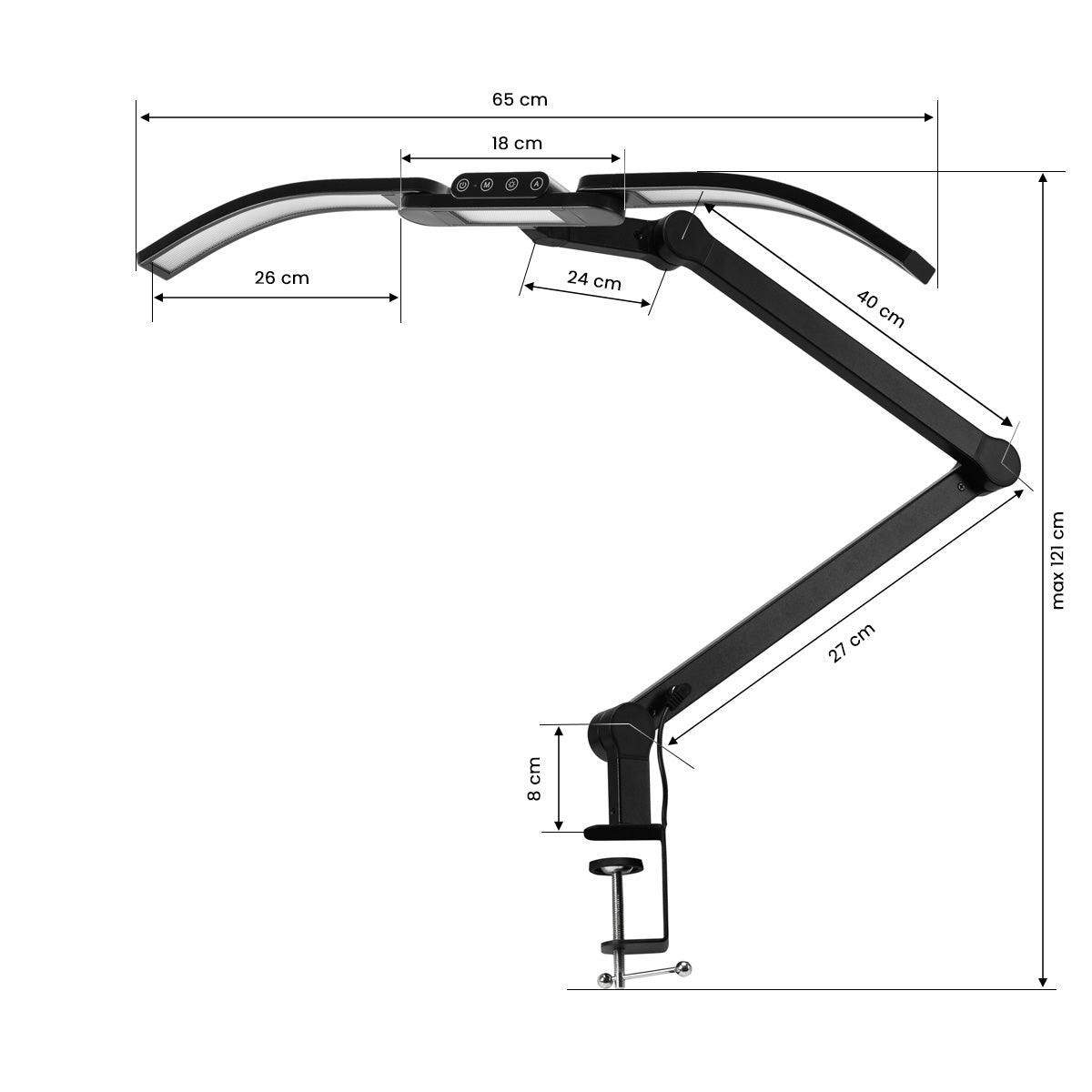 La forme fine et géométrique de la lampe attire l’attention par son apparence moderne mais intemporelle. Le schéma de couleurs blanc combiné à une finition mate confère au design un caractère élégant et professionnel qui s’intègre parfaitement dans les intérieurs minimalistes des salons de beauté. Le montage sur table est possible grâce à une pince en forme d’étau avec une ouverture maximale de 6,3 cm, adaptée à la plupart des plateaux de table. L’ensemble crée un équipement cohérent et esthétique qui allie haute fonctionnalité et design raffiné.