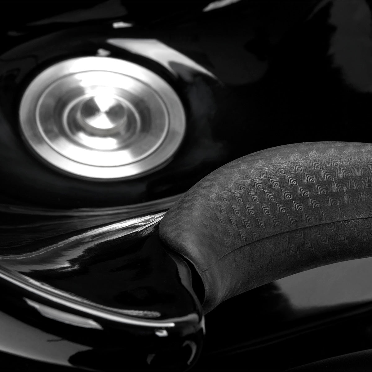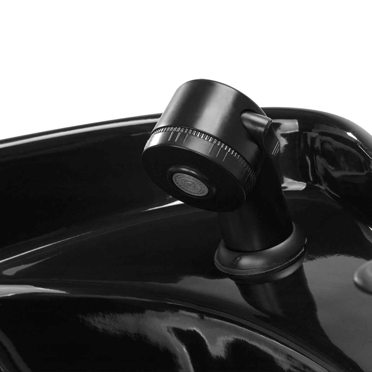 Le bac en céramique noire avec une profondeur appropriée empêche les éclaboussures excessives d'eau et de produits utilisés pendant le traitement, permettant une exécution confortable d'une large gamme de services. La possibilité d'ajuster l'angle du bac permet de régler la position selon les besoins individuels. Le matériau utilisé rend le lavabo durable, résistant aux taches et aux rayures, et très facile à nettoyer. Un col correctement profilé offre un soutien et un confort pendant le lavage des cheveux, et avec la housse en plastique confortable, le client ne ressentira pas la gêne liée à la surface froide en céramique.