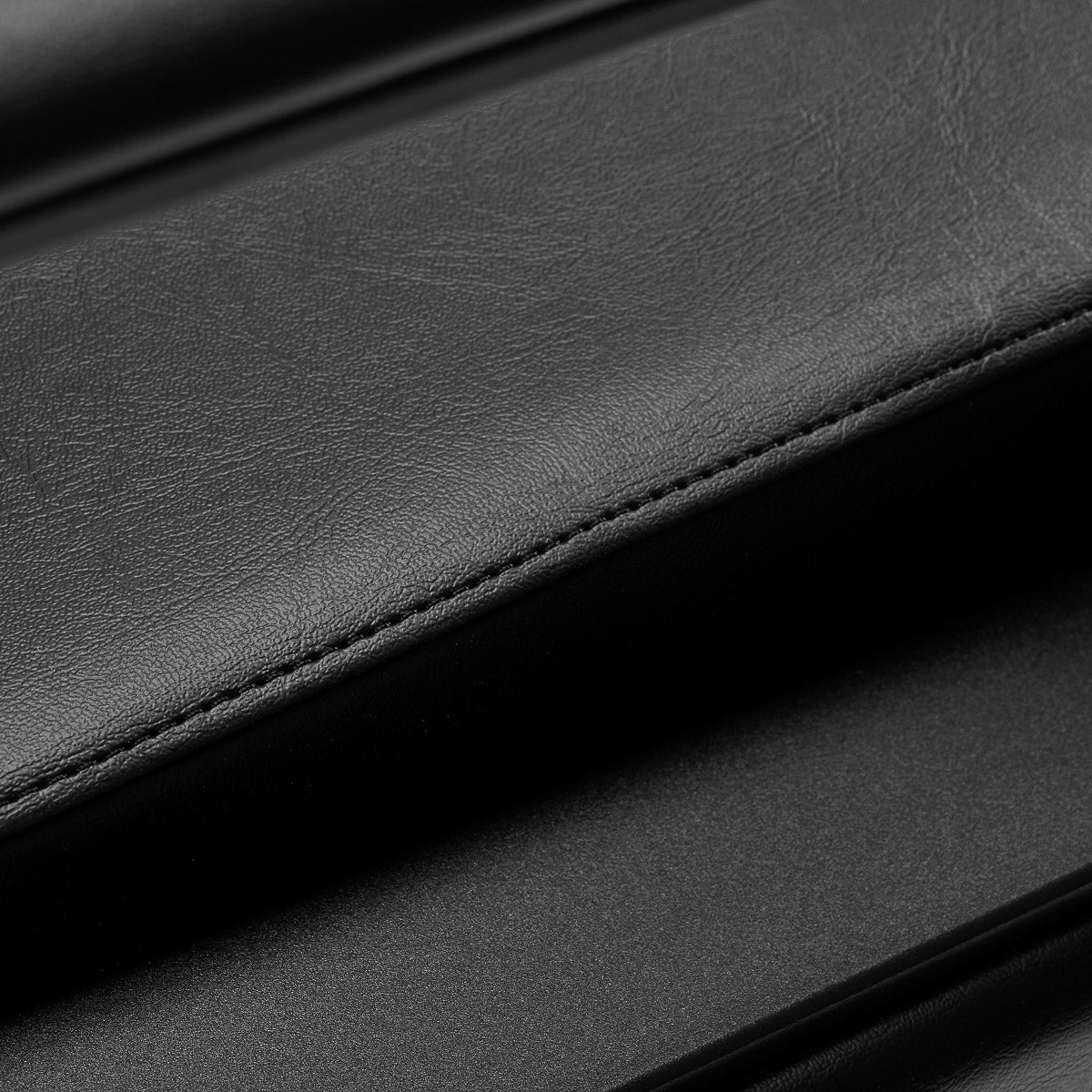 Un fauteuil correctement profilé rempli de mousse durable assure un grand confort d'utilisation et les accoudoirs géométriques partiellement rembourrés permettent un positionnement correct des épaules du client. Le dossier est placé à un angle optimal et offre un excellent soutien pour la colonne vertébrale. La housse en cuir synthétique dans des nuances de noir garantit une durabilité à long terme et une facilité de nettoyage. L'aspect original et élégant du bac ajoute une expression unique à l'intérieur. Les pieds de stabilisation ajoutent de la stabilité et soulignent subtilement le caractère stylé de l'unité de lavage de coiffure. L'ensemble comprend des accessoires complets avec une finition mate dans des nuances de noir, incluant un robinet, une douchette et des tuyaux dédiés pour fournir un ensemble complet d'outils pour le travail.
