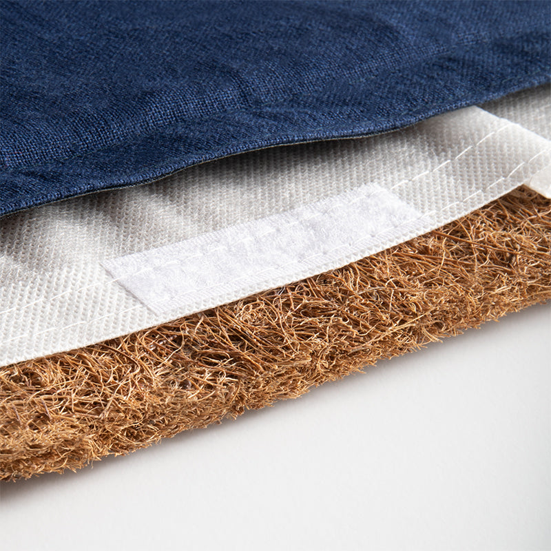 le tapis est fabriqué à partir de matériaux de haute qualité, tous les éléments utilisés sont anti-allergiques. la housse du tapis est en lin naturel 100 % de haute qualité, à l'intérieur du tapis se trouve une épaisse insertion en fibre de noix de coco naturelle, grâce à laquelle le tapis est naturel et écologique. la fibre est latexée, elle n'absorbe donc pas l'humidité, et la cartouche reste hygiénique.
