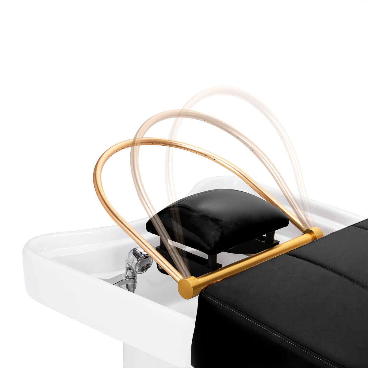 L'arc doré avec un angle d'inclinaison réglable, conçu pour le Waterfall Head SPA, est une solution innovante qui permet un soin holistique du cuir chevelu. Les jets d'eau agissent comme un massage naturel, améliorant la circulation sanguine, réduisant la tension et le stress. Les flux d'eau précisément contrôlés soutiennent la régénération des cheveux et hydratent intensément la peau. L'arc de la cascade avec possibilité de réglage de l'angle assure un nettoyage profond du cuir chevelu et une relaxation, apportant un soulagement des maux tels que les maux de tête ou la raideur de la nuque. Grâce à un système intelligent en boucle fermée, l'arc puise l'eau dans la cuvette et la réutilise, offrant un massage aquatique ininterrompu. C'est une combinaison de technologie et de relaxation qui soutient la santé des cheveux et le bien-être.