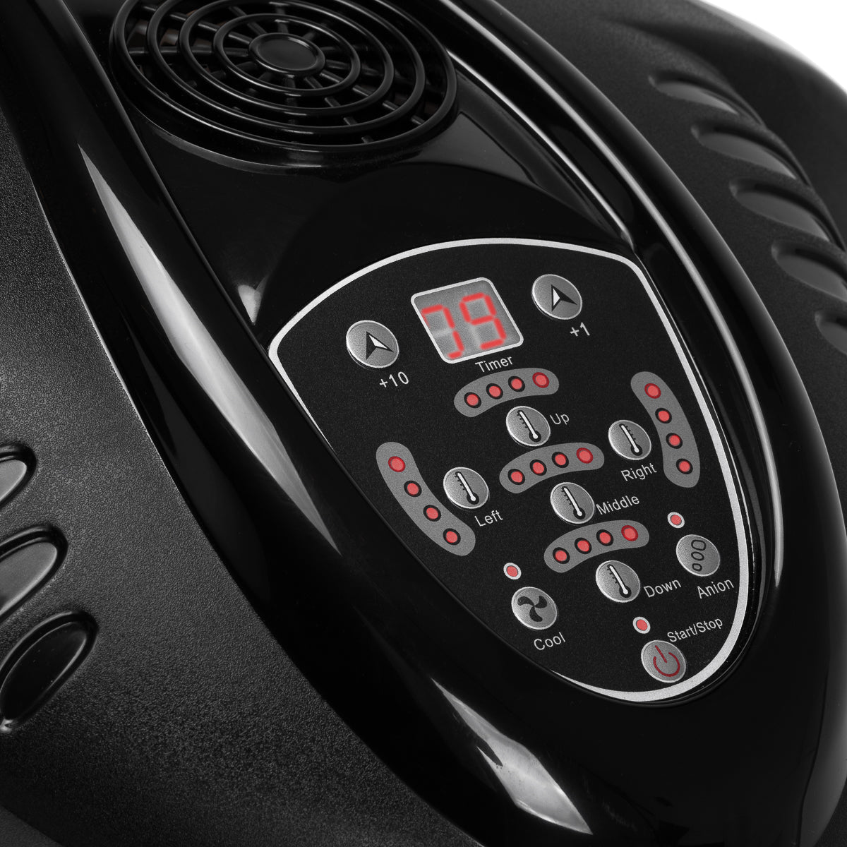 L'ajustement électronique des paramètres facilite grandement le travail du coiffeur. L'appareil dispose d'un panneau de contrôle avec un affichage numérique. En l'utilisant, vous pouvez régler efficacement et indépendamment la puissance de chacune des cinq sorties d'air sur quatre niveaux, et ainsi la température (dans une plage de 70-90 °C) ou la durée du traitement (entre 1 et 59 min). De plus, l'appareil possède une fonction ozone. L'appareil améliore nettement l'efficacité des différents traitements.