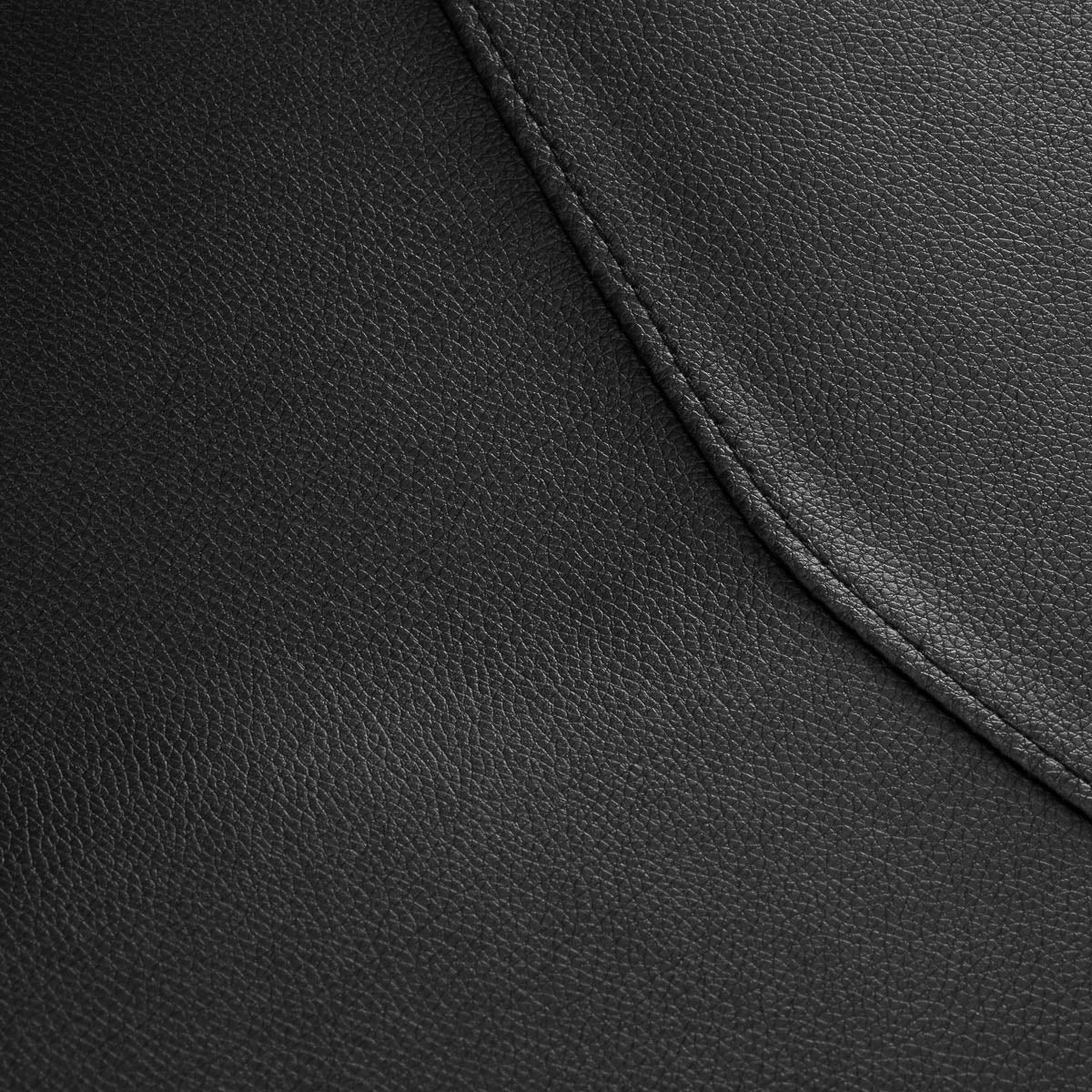 Le corps durable et le cuir synthétique en nuances de noir assurent la résistance à l'humidité, la solidité et la durabilité. La base ronde en nuances de noir garantit la stabilité et la durabilité. Le dossier supérieur profilé apporte une légèreté visuelle, soulignant le caractère moderne de la chaise, tandis que les détails méticuleux démontrent la haute qualité de l'artisanat. La couleur noire minimaliste combinée à une couture esthétique permet à la chaise de s'intégrer parfaitement à divers styles d'intérieur de salon, ajoutant une touche élégante et moderne.