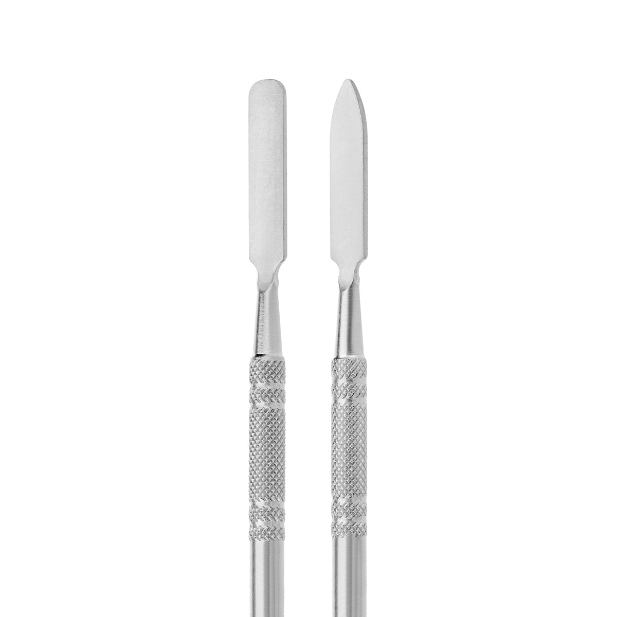 Le set comprend également une baguette double-face avec une finition semi-mate, ce qui facilite le mélange des produits. L'outil possède deux embouts fonctionnels de formes différentes, utilisés selon les besoins. L'instrument tient parfaitement dans la main, et grâce à la rainure élégante sur le manche, il ne glisse pas dans la main, rendant le travail beaucoup plus facile.