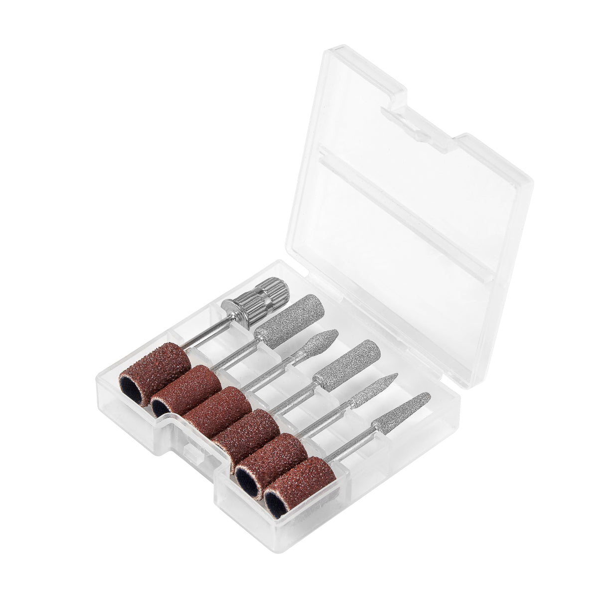 Le kit comprend : base de perceuse à ongles, tête, support de tête en plastique, embout conique, câble de tête, alimentation, instructions.
