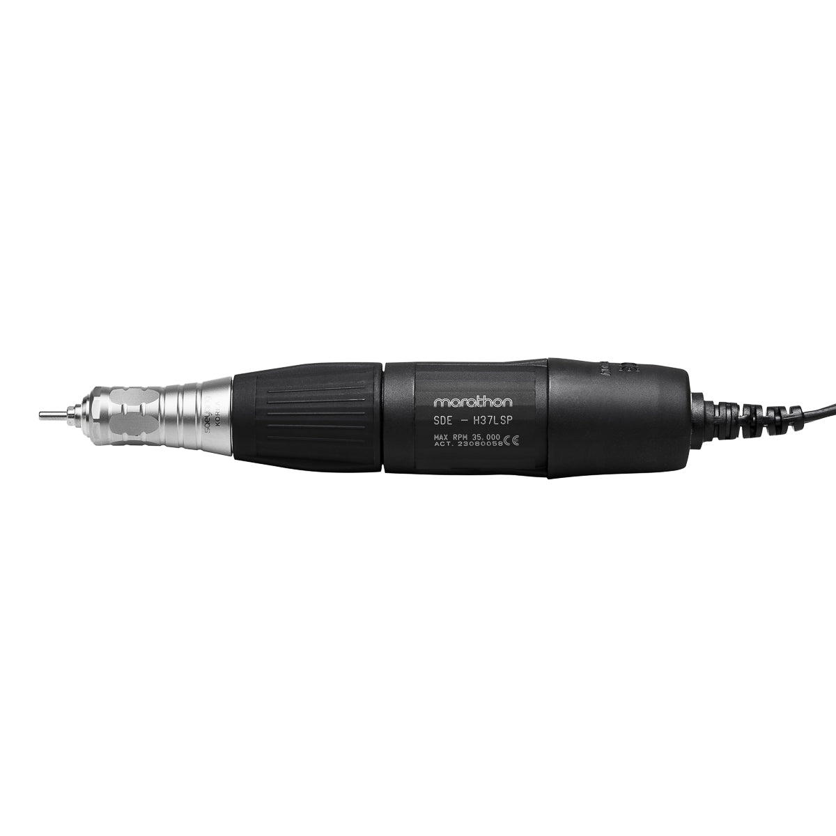 La pièce à main précise H37LSP tient parfaitement en main, garantissant un grand confort d'utilisation. Elle atteint une vitesse maximale de 35 000 tours par minute, ce qui influence l'efficacité du travail. La pièce à main est équipée d'un système Twist-Lock facile à utiliser, permettant des changements rapides et fluides des embouts. L'élément est correctement équilibré et profilé de manière ergonomique, et de plus, les vibrations de la pièce à main ont été réduites, de sorte que même de nombreuses heures de travail avec la perceuse à ongles ne fatiguent pas excessivement la main. Le boîtier en plastique limite le transfert de chaleur afin que le chauffage de l'appareil ne soit pas perceptible. Le câble à ressort flexible offre un grand confort de travail, atteignant jusqu'à 135 cm de longueur avec une extension significative.