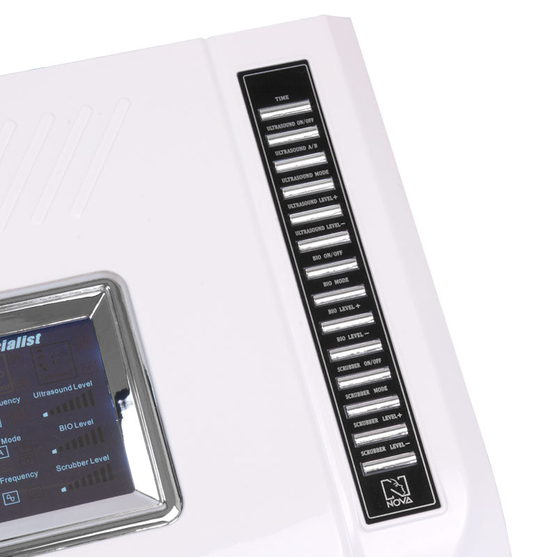 Skin scrubber - peeling par cavitation (Ultrasonic peeling) est un nouveau système pour le soin profond de la peau et sa régénération sans effets secondaires. Ce traitement consiste à nettoyer la peau par des ondes ultrasonores, permettant ainsi d’éliminer précisément l’excès de sébum des pores et follicules pileux, de se débarrasser de la couche cornée, des points noirs, comédons et bactéries. Le peeling par cavitation agit en douceur sur la peau grâce à des vibrations agréables et naturelles sans utilisation de courant électrique. L’utilisation de cet appareil permet une régénération profonde de la peau par un renouvellement rapide et efficace ainsi qu’un nettoyage en profondeur, dont le résultat est une peau visiblement renouvelée et rafraîchie. C’est un soin indolore généralement perçu comme agréable. La cavitation agit également positivement sur les couches plus profondes de l’épiderme, constituant une excellente préparation pour d’autres soins esthétiques (exfoliation aux acides et/ou sonophorèse, ionophorèse et autres).
