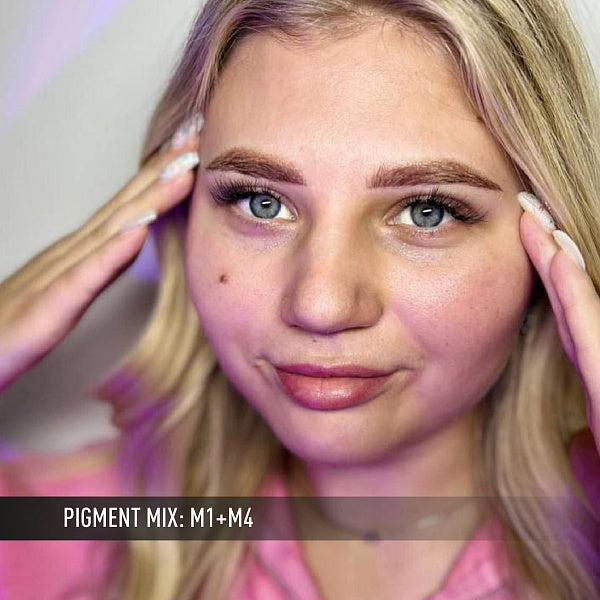 M1-Dark Blonde offre un pigment équilibré et naturel avec une base jaune-vert accentuée par de subtils sous-tons rouges, parfait pour sublimer les sourcils blonds et blond foncé.