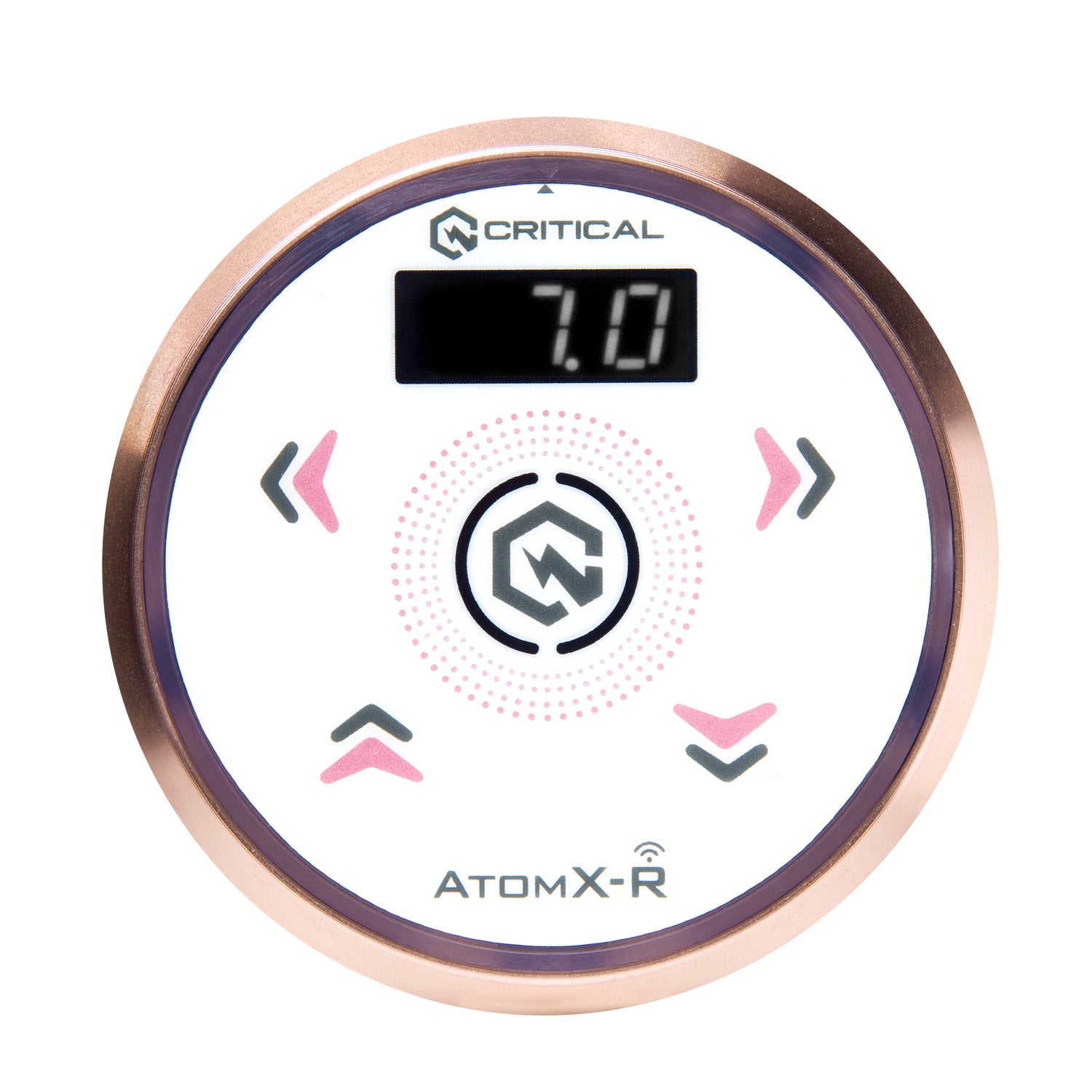 Critical a modernisé le design de la surcouche de l'Atom X-R pour améliorer l'expérience de l'interface utilisateur. Il est facile à envelopper et à couvrir pour des raisons d'hygiène, et les boutons restent fonctionnels même lorsqu'ils sont couverts. Il dispose également d'un indicateur de tension unique changeant de couleur que l'on trouve sur l'Atom et l'AtomX, ainsi que d'un affichage numérique traditionnel de la tension.