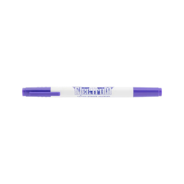 Un marqueur de pochoir pour tatouage à double pointe professionnel conçu pour un marquage cutané durable et très visible, même lors de nettoyages et préparations intensifs.
