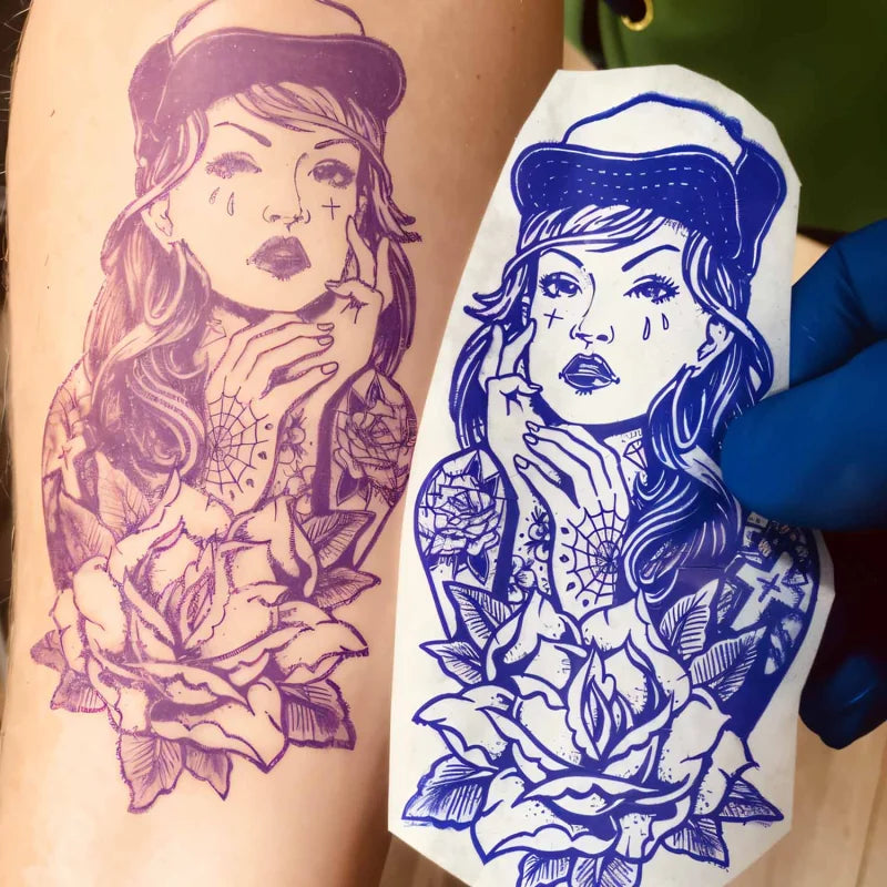 Avec cette encre pour transfert de pochoirs de tatouage, les artistes peuvent simplement imprimer le dessin, transférer le pochoir sur la peau, et commencer le tatouage, rendant le processus de préparation plus rapide et plus efficace dans les studios de tatouage professionnels.