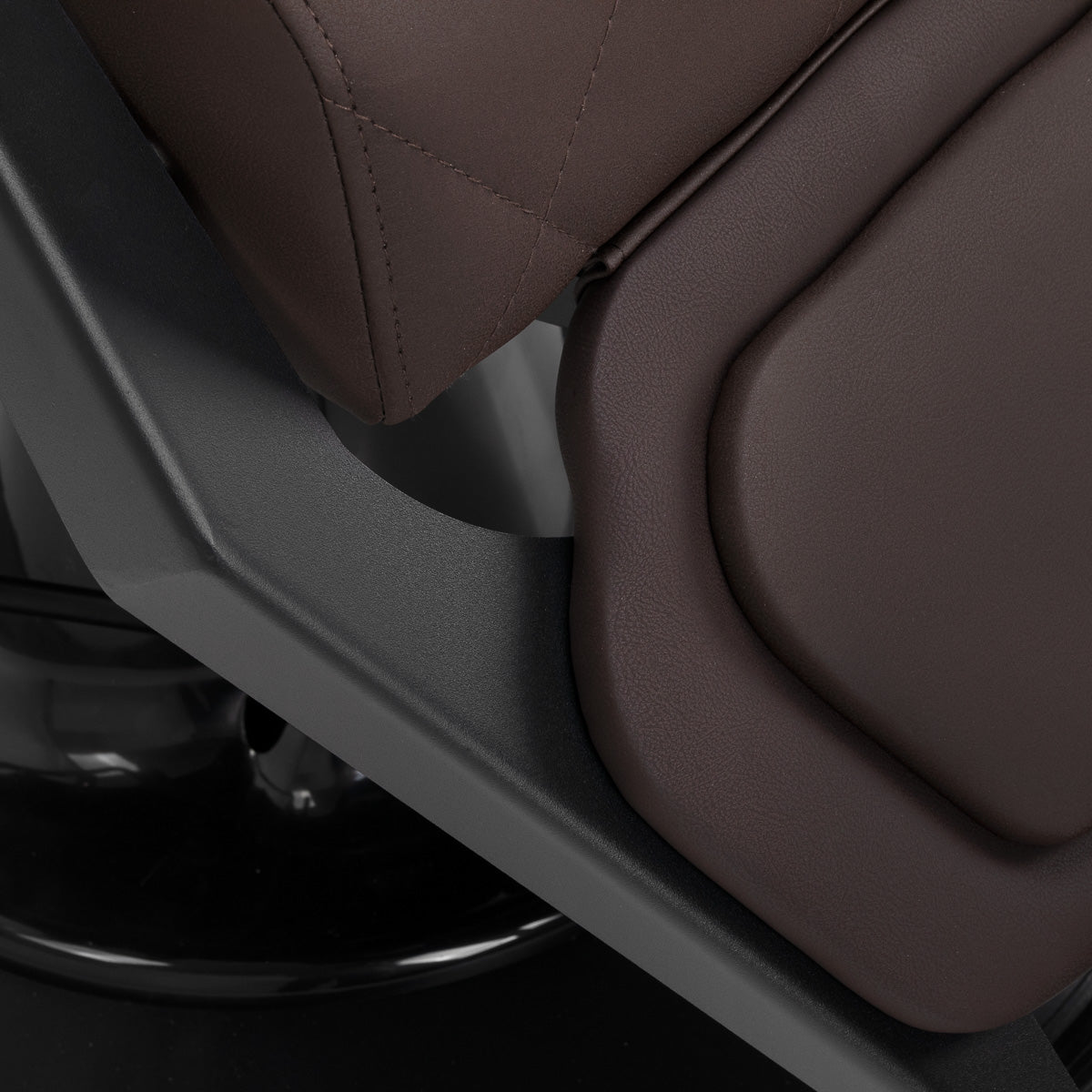 La conception ergonomique du siège et le dossier soigneusement profilé assurent le confort du client même lors de traitements prolongés. Les accoudoirs rembourrés montés à la hauteur optimale permettent un positionnement correct des bras du client, évitant les tensions dans la nuque et les épaules. Le mécanisme de rotation complète augmente la flexibilité du travail et permet un réglage facile de la chaise dans n'importe quelle position.