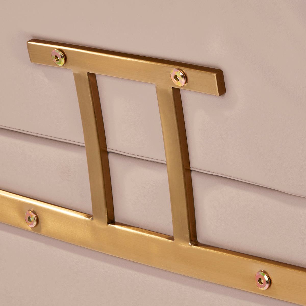 Le rembourrage en mousse durable et résistante à la déformation ainsi que le revêtement en cuir synthétique agréable au toucher assurent la durabilité du mobilier et son confort d'utilisation sur le long terme. Il rend également l'équipement résistant à l'humidité, durable et facile à nettoyer. Le revêtement beige lui confère un caractère unique. L'équipement se distingue par un design moderne, ce qui rend le fauteuil très esthétique dans de nombreux salons professionnels.