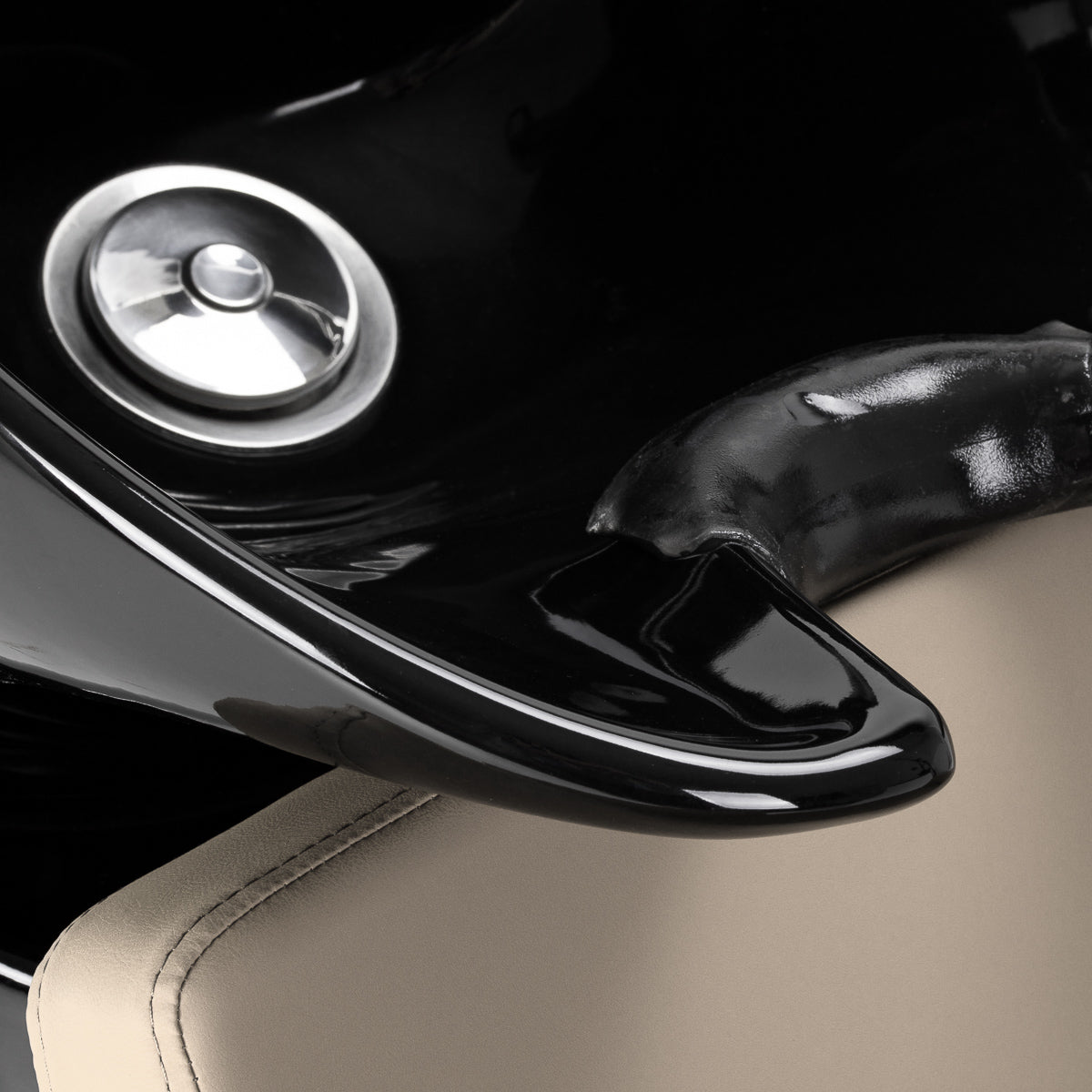 Le bac est équipé d’un mitigeur, garantissant un accès constant à l’eau chaude et froide et permettant de régler facilement la température selon les besoins du client. Un emplacement pratique pour la douchette facilite l’organisation du poste de travail, et un bouchon avec un filtre spécial permet de contrôler le débit d’eau tout en maintenant un haut niveau d’hygiène. La connexion d’eau est située à l’intérieur du socle, ce qui permet une installation discrète et soignée. L’association de solutions fonctionnelles et de détails ergonomiques rend le travail quotidien efficace et confortable.
