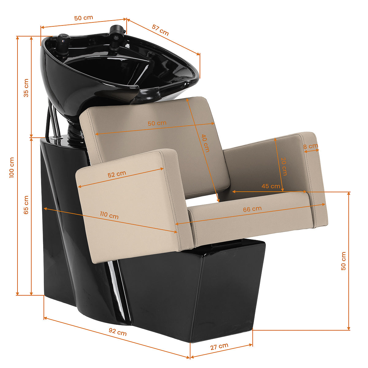 La cuvette en céramique profonde, dans des tons noirs, limite les éclaboussures d’eau et de produits pendant les soins. L’angle réglable de la cuvette permet un ajustement précis selon les besoins du client. Fabriquée en matériau durable, elle est résistante à la décoloration, aux rayures et aux produits chimiques, et sa surface lisse facilite son entretien. Le col ergonomique offre un appui-tête confortable, et le cache en plastique noir supprime la sensation de froid au contact de la céramique.