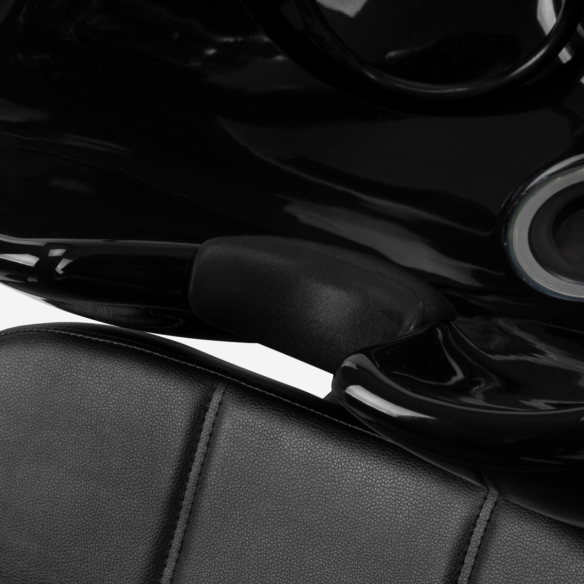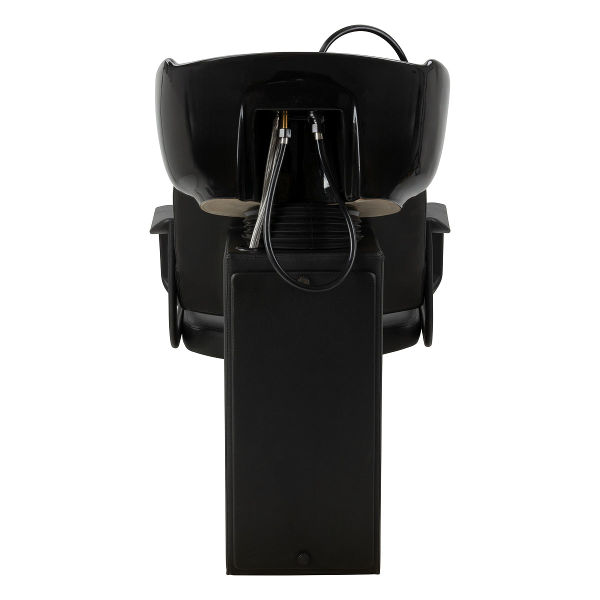 Le modèle est équipé d’un mitigeur, garantissant un accès constant à l’eau chaude et froide ainsi qu’un réglage pratique de la température selon les besoins du client. Un support pour la douchette améliore l’organisation du travail, tandis qu’un bouchon avec filtre intégré permet de contrôler le débit d’eau et aide à maintenir l’hygiène à la station. La connexion d’eau dissimulée dans la base permet une installation soignée et discrète, soulignant l’aspect net et professionnel de la station de lavage. Ces solutions fonctionnelles assurent un travail quotidien efficace et confortable en salon.