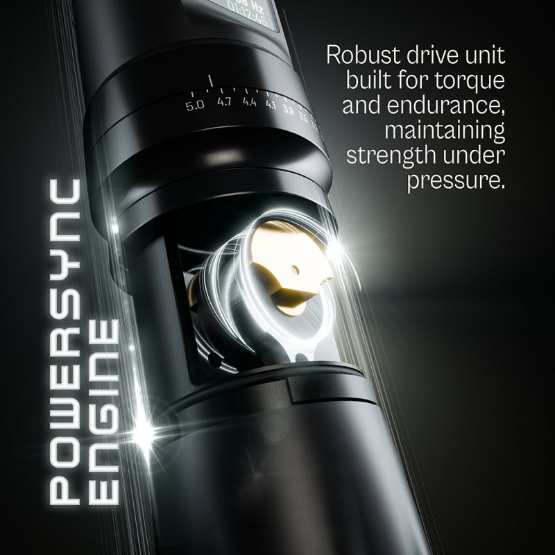 Le Enduro2 offre une plage de course continuellement réglable de 2,5 mm à 5,0 mm, permettant aux artistes d’ajuster la profondeur de frappe en quelques secondes - sans pause ni changement de machine.