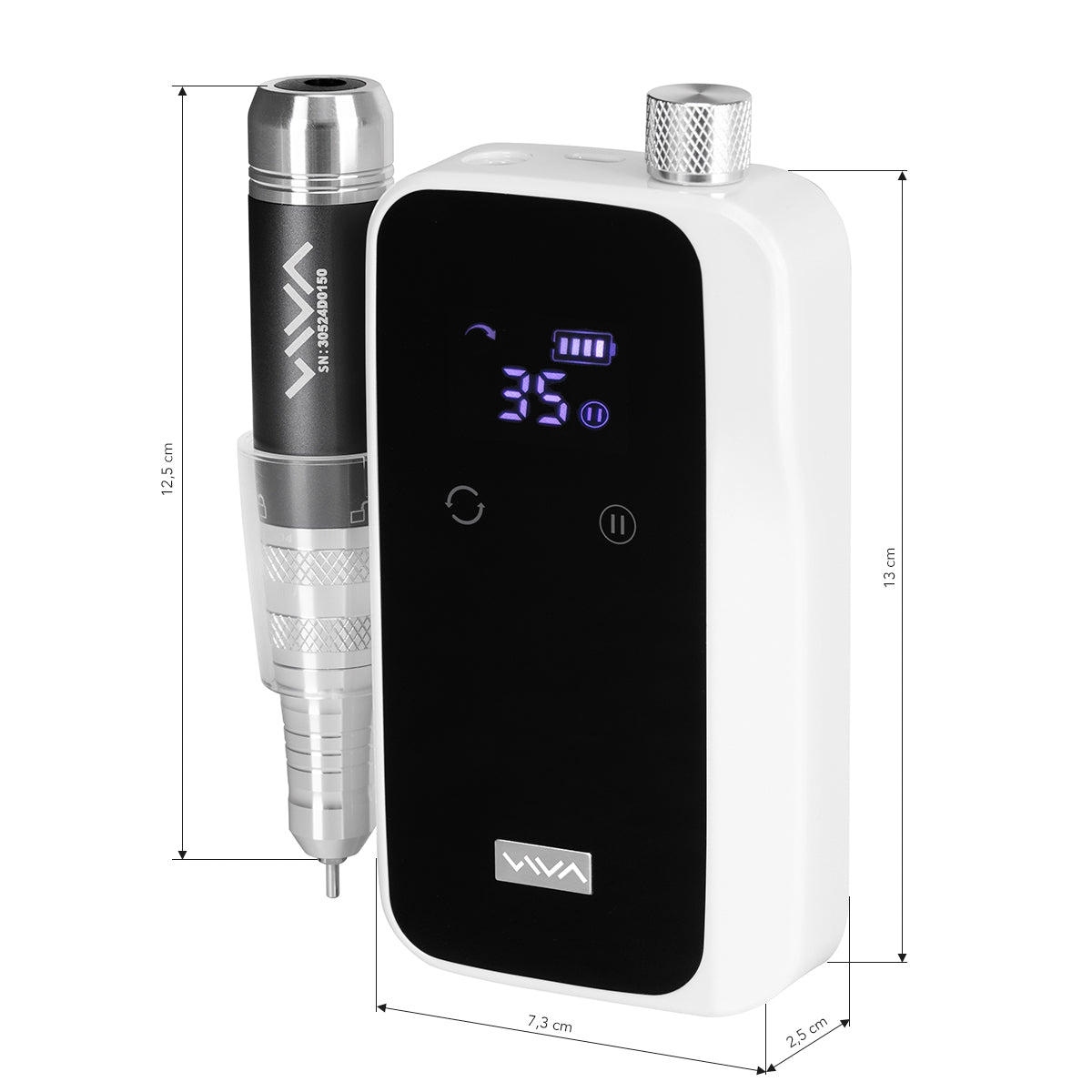 La pratique fraise à ongles sans fil VIVA 305 est un appareil compact parfait pour les stylistes d’ongles mobiles, permettant un travail pratique partout. Elle facilite grandement l’élimination des résidus de designs d’ongles précédents et améliore la préparation des ongles pour les traitements suivants. Elle permet un travail confortable jusqu’à 10 heures sur une seule charge.