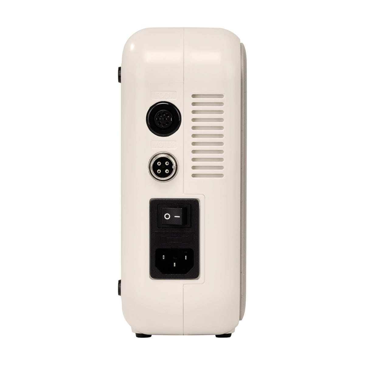 La perceuse est équipée d'une pédale, qui permet un contrôle précis et pratique de la vitesse de rotation sans utiliser les mains. Grâce à cette solution, le travail devient plus ergonomique et fluide, permettant une concentration totale sur les soins effectués. La pédale est une solution idéale pour les professionnels qui valorisent confort et efficacité.