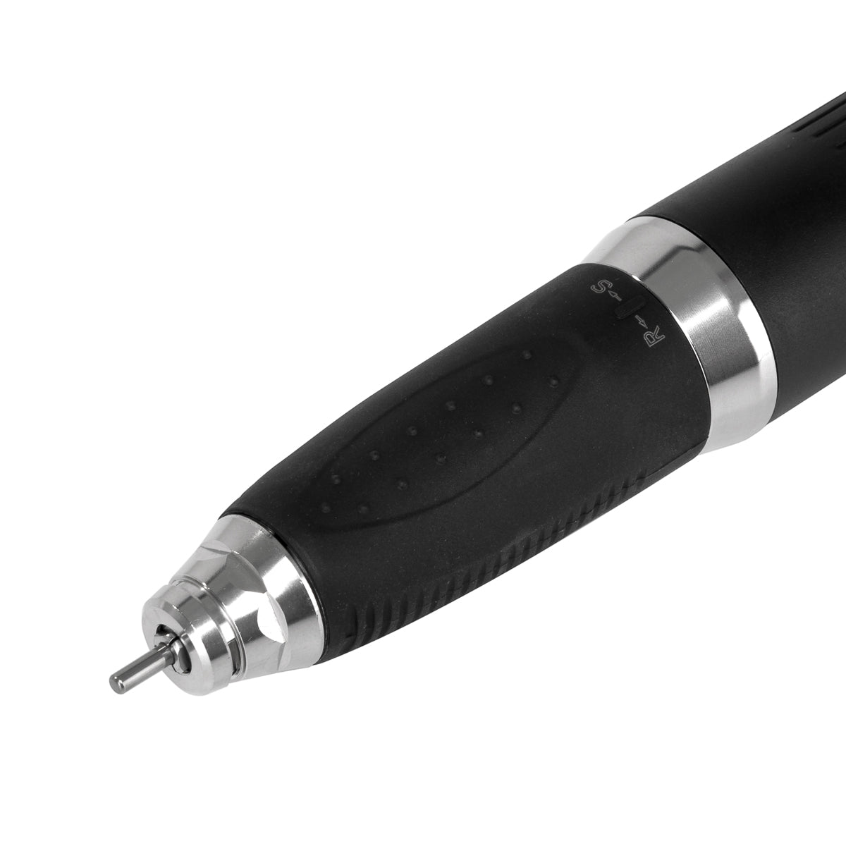 À l'aide du bouton, vous pouvez régler la vitesse de la tête jusqu'à 50 000 tours par minute, et la vitesse actuelle est affichée sur un écran numérique. Cela permet un ajustement efficace aux besoins individuels et une exécution confortable d'une large gamme de soins. Les boutons permettent un passage rapide à la pédale, un changement de sens de rotation et l'arrêt de l'appareil (fonction pause), offrant un contrôle total sur la perceuse et facilitant l'adaptation de son fonctionnement aux services réalisés. Les indicateurs LED informent sur l'état de l'appareil, montrant le sens de rotation, l'activation de la pédale, l'activation de la fonction auto cruise et la pause. Le fonctionnement de l'appareil est simple, efficace et intuitif, ce qui sera certainement apprécié par les utilisateurs les plus exigeants.