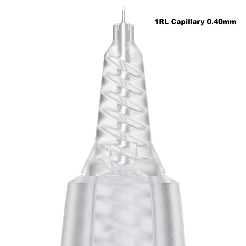 • 1RL Nano (0,20 mm) : L'aiguille unique la plus fine, parfaite pour les poils filigranes, les contours des lèvres et le travail capillaire sur l'aréole.