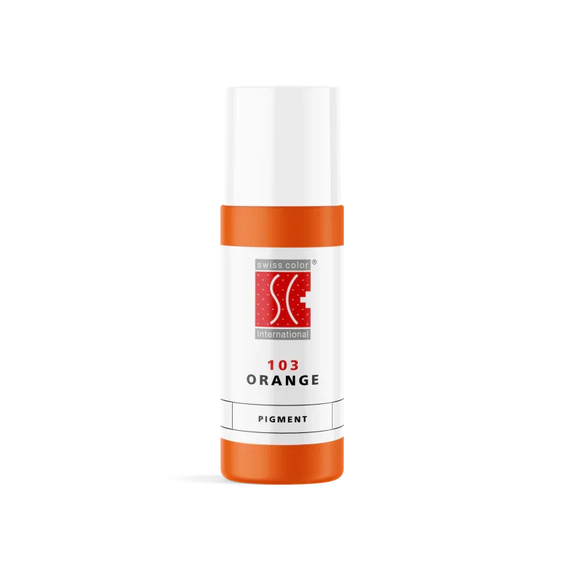 - 103 Orange (5ml) : Une teinte chaude parfaite pour mélanger avec des pigments pour lèvres, sourcils et aréoles.