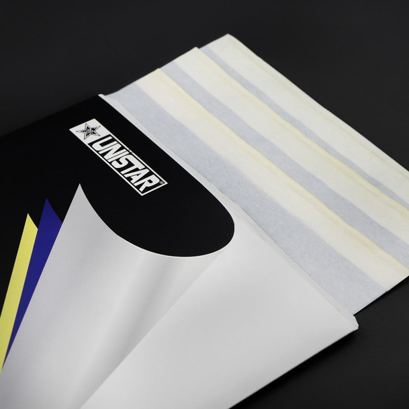 Papier hectographe pour copieur thermique UNISTAR est conçu pour un transfert précis et fiable des dessins de tatouage à l'aide d'imprimantes thermiques. Il permet aux artistes de reproduire les dessins avec une grande précision, capturant même les moindres détails et assurant des contours clairs et nets sur la peau.
